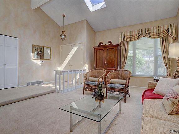 Don't miss this delightful 2-story home in the beautifully maintained Dam East neighborhood. Desirable Atrium model features vaulted ceilings, skylights, spacious living areas, an abundance of natural light throughout, private patio area off of dining room, and an attractive brick fireplace with gas insert. The flexible floor plan has two large primary suite options, an eat-in kitchen with island, and two additional main floor bedrooms-one with built in bookshelves and currently used as an office. With some updating, this home has so much potential to become your dream house. Beautiful backyard area with a composite deck, mature landscaping, and endless opportunities to create your own backyard oasis. Home backs to one of the main greenbelts in the community with walking paths throughout the community. Low HOA fees offer an incredible value that includes a clubhouse, pool, sand volleyball court, tennis & pickleball courts, playground, and a variety of neighborhood events throughout the year. Conveniently located within minutes to Nine-Mile Light Rail Station, King Soopers, dining and retail, Cherry Creek State Park, Denver Tech Center, and I-225.