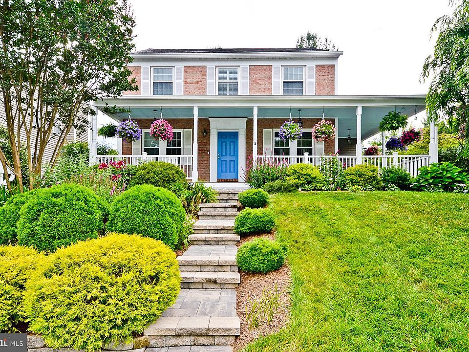 A charming colonial home with a brick front, 1 car garage and finished basement on a corner lot in a great location. This home boasts beautiful landscaping, wrap around front porch, a large wooden deck, stone patio/walkway, and attached 8' x 22" storeroom with exterior entrance. Hardwood floors throughout the main floor (including steps to second floor). The main level has a formal dining room, living room with wood fireplace, built in shelving (entryway and living room), and a spacious kitchen offering granite countertops, a large island, 42" wooden cabinets, backsplash and soft close drawers. Sliding glass door from kitchen leads to large wooden deck that overhangs a stone patio below. Upstairs there are 3 Bedrooms Programmable irrigation system and ADT security system included with the home. Heat pump system has been recently replaced. The nearby downtown area offers shops and restaurants at the Columbia Mall, a vibrant arts scene with Toby's Dinner Theatre and Merriweather Post Pavilion, as well as free outdoor concerts & other activities at Lake Kittamaqundi. The home is within a mile of the community college and hospital with easy access to major highways. Columbia features 3,600 acres of open space and 94 miles of pathways for community recreation, multiple pools and gyms.