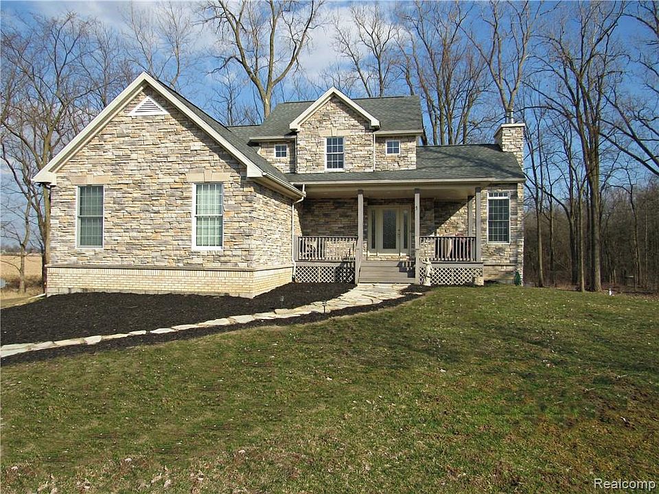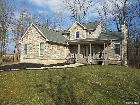 Gorgeous , unique 5 bedroom home featured in building and trade magazines. Nestled on 2 acres of wooded property, the exterior boasts cultured stone, brick and limestone jack arches, Trex decking, soffit cans, switched soffit plugs, flagstone walkway, new 12x16 shed and the property has an artisan well. Grand foyer w chandelier and cathedral ceilings, plenty of natural sunlight. Heated kitchen floors, granite counter tops, all stainless steel appliances, all solid doors, custom cabinet lighting, immaculate carpeting, 2 dishwashers, 2 fireplaces, first floor master suite w 550 sq ft bedroom w his/hers closets, 40x40 Shower, air tub, heated floors, and double sinks. Main floor laundry, forced air, central air, 300 amp service, cable ready, Cat6. Walkout basement is wired for finishing. All LED lighting w dimmer switches. Macon Township Taxes+ 5 Schools to choose from with 3 of them servicing this address with school buses and the other two pick up just down the street. A must see