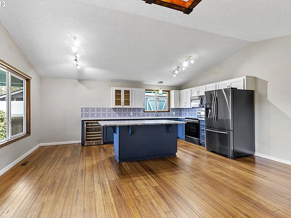 Welcome to Burnett Ct! Perched on a quiet cul-de-sac, this well maintained cheerful single level ranch is move in ready and includes all the major appliances! Complete kitchen remodel in 2018 created an effortless flow to dining area and included thoughtful updates like a massive quartz island, chic blue soft close cabinets, stainless steel appliances, and wine fridge to keep your bubbly chilled. The tastefully landscaped, fenced backyard has a covered patio, beautiful large paved platform, plant beds, tool shed for additional storage, and drip irrigation system, including in the garden beds in the front yard. Sunken living room with wood burning fireplace. Primary suite has double closets and a full bathroom. Queen Murphy bed with closet and drawers in third bedroom. Vinyl windows. Recent updates include a new tear off roof and exterior paint in 2020, newer water heater and fence, bamboo floors in the hallway and kitchen/dining area, fresh carpet 2023. All this, plus a 2-car garage, heat pump for AC, Nest smart thermostat and NO HOA! Just a quick stroll to Greenway Park, Conestoga, Southridge and Fanno Creek Trail!