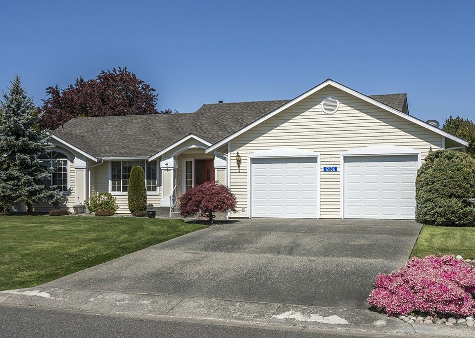 Rambler on shy 1/4 acre lot in Bayhill, a desirable development in Burlington. 1772 SF, 3 BR, 1-3/4 baths, combined formal living & dining room w/vaulted ceiling. Kitchen w/beautiful granite counters, garden window, under mount sink, eating bar that opens to eating area as well as large family room w/gas FP, vaulted ceiling, skylights & French doors to partially fenced backyard. Pocket door to utility room which leads to attached over-sized 2 car garage. Brand new roof, beautiful street appeal!