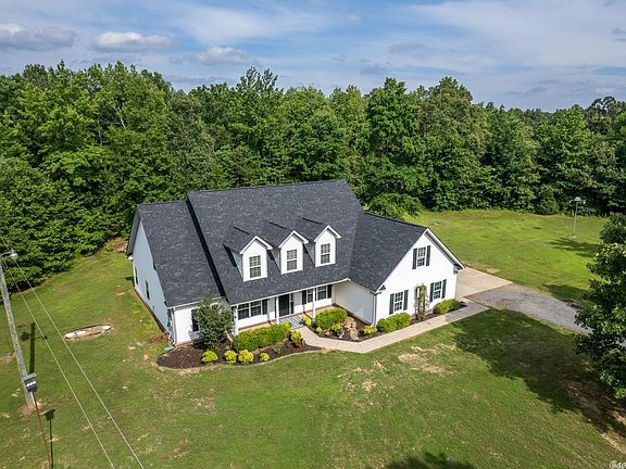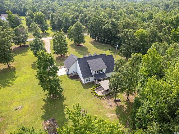 GORGEOUS HOME ON 5 ACRES IN BRYANT SCHOOLS! A covered front porch with sunset views leads into the inviting foyer and office with French doors. The 2 story Living room with built-ins and hardwoods opens to kitchen featuring island with breakfast bar, granite countertops, and spacious dining area. Next to living room is a flex space that would be great as a formal dining, craft, or playroom. The Primary suite is very private, and features double closets and vanities. The laundry room doubles as a FEMA approved safe room. Upstairs are 3 bedrooms and a bath, all with huge walk-in closets. The lot flat and usable with woods and wildlife behind and features stone patio with pergola and landscaping. barn with chicken coop, great for animals or storage. New roof in 2023 and some new paint throughout. Quiet street with cul-de-sac. Awesome location!