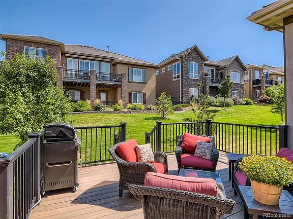 Stunning home in Country Club Highlands shows like new! Bright, open floor plan with high ceilings and lots of natural light. Beautiful wood floors throughout the main living area. Gourmet kitchen with quartz countertops, large island, double oven, gas cooktop with hood, lower cabinet sliders, walk-in pantry, butler's pantry has been plumbed for a wet bar. Spacious great room with a beautiful gas fireplace and mantle. Large dining room. Wonderful mountain views from the front bedroom.. Large 5 piece primary bathroom with plenty of natural light. Enjoy the large back deck with desirable morning sun. Gas grill is included and is connected to a gas line. New carpet in primary bedroom. Beautifully finished basement has a large bedroom and bathroom with a large unfinished area for storage or to finish as you like. Wonderful 3 car tandem garage. Country Club Highlands is a desirable community offering a low maintenance lifestyle with a beautiful clubhouse, outdoor pool and tennis courts, conveniently located close to trails, restaurants, coffee shops, shopping and Whole Foods. Convenient access to I-25, Boulder and DIA. OPEN HOUSE SUNDAY, 9/25/22 FROM NOON TO 2:00 PM.