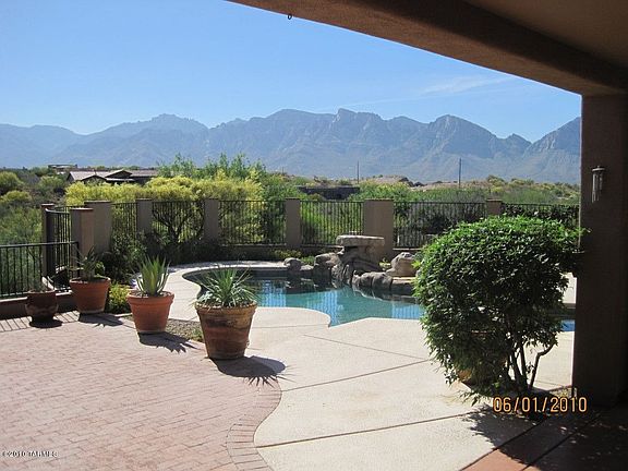For more information on this property, contact the Listing Agent, David Henry at (520) 360-2116 or henrytucson@gmail.com. Immaculate Southwest style home w/spectacular,unobstructed Pusch Ridge Views.Desirable split 4 bdrm plan includes the master suite on one side of the home & three bdrms on the other side,one with its own full bath offering great privacy for guests.Kitchen renovations within the past few yrs include granite counters,SS double sinks, double ovens, dw & frig,tremendous counter space, walkin pantry & mtn views.Solid Brazilian cherry hardwood floors in the family rm,entry foyer,formal living & dining rms.Exterior & interior freshly painted May 10,including garage.Garage floor re-surfaced with epoxy paint finish.New carpet in all 4 bdrms.Large east-facing covered porch includes a builtin 4 burner stainless grill & fridge,extending out to the self-cleaning Pebbletec pool and spa and outdoor fp