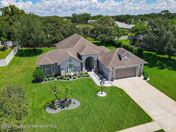 Active with Contract, Accepting Back Up Offers. Florida Living at it's FINEST! Come preview the gold standard with this meticulously maintained, custom built 3-Bedroom, 2-Bathroom, 2 Car Garage home built on a Half-Acre located in beautiful West Linden Estates in Hernando County. This energy efficient unit was recently painted outside, new interior lighting installed, newly installed entry way pavers and recently installed laminate flooring in the bedrooms with genuine Oak Wood flooring throughout the rest of the home. Main Bathroom was remodeled with a high attention to detail creating a spa-like retreat and fitted with its own tankless water heater. Relax in your amazing soaker-tub or experience the spa-treatment in the custom shower area. Come cook your best meals in this amazing kitchen complete with Cherry Wood Cabinets complimented with upgraded Granite countertops. Kitchen Island has plenty of storage and a separate prep-sink. Great Room has decorative Tray Ceilings and a custom built-in entertainment center with cabinets for plenty of storage. Screened Lanai has plenty of room for bug-free entertaining and an additional 12x12 concrete pad for those outdoor dinners. Perfectly manicured lawn with mature, yet easy-to-maintain landscaping. Upgraded window shutters and window treatments, insulated windows, alarm system, water-softener, and larger rooms throughout. Ride your bike or take a leisurely stroll on the sidewalks in this community. Enjoy a uniformity and higher standard of living in an HOA community without high fees protecting your property and surrounding area. Conveniently located near major shopping, restaurants, hospitals, major highways, and a short distance to Tampa Airport. Come make this your forever home!