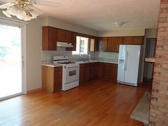 Beautiful all brick home on 1-1/2 acre property. 3 bedrooms, 2 baths, 15 x 18.5 living room, nice size kitchen and dining area. Hardwood floors in kitchen, dining, halls, and 1 bedroom. Carpet allowance for new carpet in living room and 2 bedrooms. Nice 16 x 16 wood deck, 12 x 20 wood barn, 24 x 34 attached garage, paved drive, mature trees and nice landscaping. Forced air furnace, central air, natural gas, well & septic.