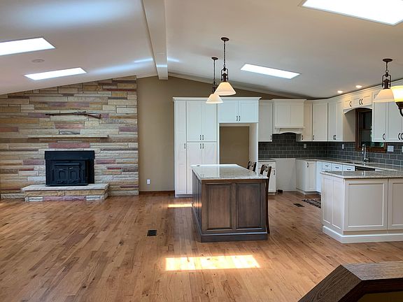 Nature lovers will be amazed by this magical property with almost 7 acres of paradise! Spend time gazing at the deer feeding on the apple and pear trees. A watering hole self-fills from the roof rain providing the deer and birds with plenty to drink. Gently rolling hills, woods, a stream, and bridge are ready for you to explore. The grassy circular cove near the stream is a perfect picnic spot. If you need a change from playing in this amazing yard, you are only steps to the bike path. Open floor plan with the fantastic, updated kitchen that includes soft close cabinets. Cozy up by the fireplace or wood burning stove on those cold evenings and watch the snow fall. Lower level offers a concrete ceiling bunker. Massive pole barn with water and electric. This property is a must see!