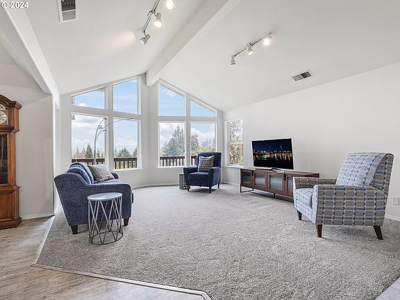 Nestled in Northwest Happy Valley sits this sprawling 3-story home with the PRIMARY ON THE MAIN LEVEL as well as a separate office. Enjoy panoramic views of the Oregon valley and Mt. St. Helens! Located just .5 miles away is the Leach Botanical Garden, where residents can take in the beauty of nature as well as explore the nearby Aerial Tree trail and Wahoo Creek area. This spacious home is tucked away from the main road on a flag lot, which allows for desired quiet and privacy with a layout that can easily accommodate multigenerational living. With recent updates including a BRAND NEW roof, new interior paint throughout, brand new carpeting and more, this home is fresh and ready for your personal touch! It's a must see so come take a look! [Home Energy Score = 4. HES Report at https://rpt.greenbuildingregistry.com/hes/OR10114030]