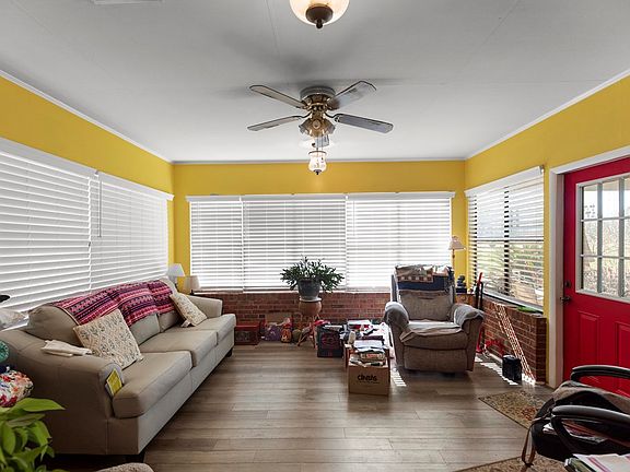 Charming 3-bedroom, 2-bath brick home in a peaceful country setting with a metal roof and plenty of character. The spacious living room features a cozy wood-burning fireplace, while the eat-in kitchen offers stainless steel appliances, ample cabinet space, and both a breakfast area and separate dining room. A large sunroom provides a versatile space that can be used as an office, playroom, or bonus room. Beautiful wood ceilings flow throughout the home, with hardwood flooring in the living, dining, kitchen, and hallway, plus new LVP in two bedrooms and the sunroom. Outdoor living is easy with a welcoming front porch and a large covered back porch, perfect for relaxing or entertaining. Great location with the charm and comfort of country living.