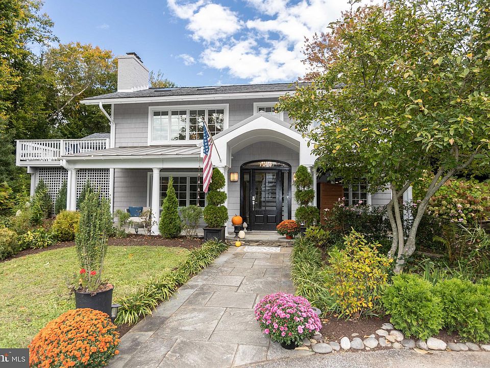 Exceptional fully-renovated home on a beautiful private landscaped lot that is nearly an acre of lawns, gardens and patios. A lovely covered porch provides entrance to the lower level featuring a family room with a fireplace, full bath and large bedroom. Ascend the elegant stairway with custom Chamfered balusters to the, large open-concept living room, dining area and kitchen. All new Pella casement windows throughout provide plenty of natural light. A vaulted ceiling with beams and skylights, large windows and sliders to the side deck create a feeling of beach living in this spacious, light filled space. The large open kitchen features stainless steel appliances and marble countertops, an entertainer’s dream with two prep areas and dishwashers. Custom cabinetry provides endless amounts of storage. A small hallway leads to the primary suite, which boasts windows on three sides and Dutch doors leading to a private outdoor shower where you can commune with nature. Three additional bedrooms and three full baths complete the second level providing comfort and convenience. Step from your kitchen onto the large, lighted deck with built-in grill, and Italian pizza oven. From the outsized deck, step onto the terraced yard, which provides abundant space for entertaining with separate patios, a fire-pit and even a pergola with retractable cover surrounded by extensive raised flower/garden beds. High-efficiency multi-zone HVAC, ample storage, circular driveway and great attention to detail throughout await you on a highly sought-after street where you can walk to everything Ruxton has to offer.