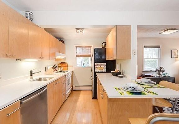 Beautifully renovated 2 bedroom condo located less than a mile away from the Davis Square T Stop with 2 off-street parking spots! This bi-level condo features hardwood floors throughout, an updated open concept kitchen/living room with quartz countertops, TWO private outdoor spaces, equal-sized bedrooms perfect for roommates which both feature skylights, in-unit washer dryer, extra private storage, and a deeded off-street tandem parking spot which can easily fit two normal-sized vehicles. Great location close to all of the bars, restaurants, and shops of Davis Square as well as Tufts University. First month's rent, security deposit, and broker's fee equal to one month's rent due on or before lease signing. Tenants responsible for all utilities besides hot water and sewer. First month's rent, security deposit, and broker's fee equal to one month's rent due on or before lease signing.