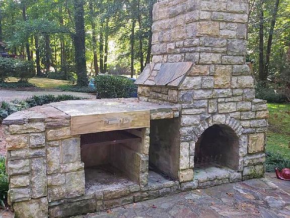 REDUCED! New paint updates!! Custom home in Brookside Manor on 1 acre lot! Beautiful natural stone outdoor living area with fireplace and grill that will be awesome for cool evenings! AND for making S'mores! Features large patio and cozy fireplace with chimney, cooking station, grilling area and firewood / charcoal storage! Screened porch! And there are TWO master suites with private baths - one up and one down! New roof in 2019! Heart pine and hardwood flooring! TWO staircases! Gorgeous custom millwork! HUGE sunken great room (19x40 approx) with lots of glass, wall of built-ins, handsome fireplace and high ceilings! Sunken formal dining / living room with fireplace #2! Great layout for gatherings! Roomy kitchen has stainless refrigerator, dishwasher, microwave and range with 2 ovens! Tons of cabinets, walk-in pantry with freezer space, snack bar, built-in desk, cabinetry and shelves! Cheery corner breakfast room has easy access to the kitchen! Back staircase #2 leads up from the kitchen to the 2nd floor! Spacious DOWNSTAIRS master suite has a large walk out bay window that overlooks the back yard! There's also a custom walk-in closet with built-ins and an updated private master bath with granite countertop, tile shower with glass enclosure and classic soaking tub! Huge laundry room has 2 closets, tile floor, stainless sink and loads of built-in cabinetry! BR #2 is also downstairs and adjoins full tile bath #2. Upstairs are 3 more BRs including second master suite (BR #3) with walk-in closet, updated private bath and wall of custom built-ins including shelves and drawers! BR #4 has 2 dormer windows plus walk-in closet. BR #5 and updated hall bath with granite top complete the 2nd floor. Deck and screened porch have easy access from great room & kitchen! Large back yard! Circular drive! New gutter guards! Convenient to shopping, restaurants & more!