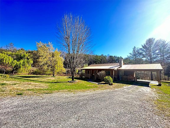 . A cute vacation home, rental or primary residence located in McDowell County approx. 20 minutes from Lake James and 10 minutes from historic downtown Marion. and approx. 3-4 miles to I-40 Exit 86. This little bungalow OFFERS a covered front porch and back porch with patio doors off the dining area and primary suite. Ideal for enjoying cookouts, entertaining friends and family, morning coffee or evening cocktails. The open concept affords the opportunity to enjoy your large rock fireplace from the living, kitchen and dining area. There appears to be 2 drains on the property with bordering brooks. There is a 3 shed pole barn with power that is perfect for your boat, camper or vehicle. An additional small storage building adjoins the carport for your lawn mower.