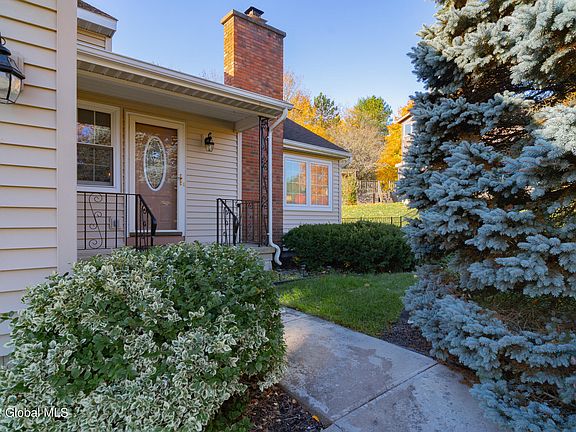Beautifully remodeled home with first floor master suite on quiet Niskayuna street. Over $160k spent on recent remodel, gorgeous kitchen with huge breakfast bar, Kitchen Kraft cherry cabinets, quartz counter tops, subway tile back splash, farmhouse sink and high quality stainless steel appliances opens to the great room with vaulted ceilings and gas fireplace. 1st floor master suite features a huge walk in closet with custom built-ins and a remodeled full bath with tiled walk in shower and granite vanity. Look out at the blueberry and blackberry patches in your private back yard from your heated sun porch with skylights. Other features include hardwood floors, 1st flr laundry room with wash basin, 1st flr office, central air, large finished storage room, full basement & oversized garage