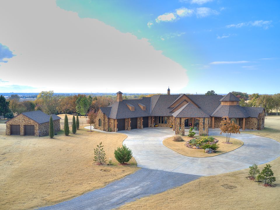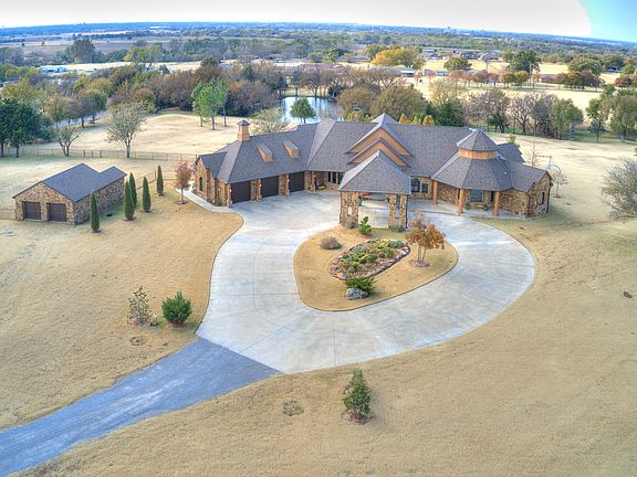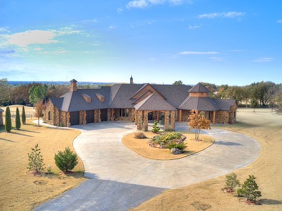 Paradise is calling your name! This absolutely stunning acreage sits only 27 minutes from SW OKC! This 20 acre property is just about as private as you can get, yet extremely accessible at the same time. As you enter through the gate and down the long winding driveway you'll find the immaculate 5 stall horse barn connected to another fantastic workshop and lean too. Across the pasture and past the spring fed pond you'll find the custom built dream home that'll make the country club jealous. Through the oversized front doors and into the foyer, your eyes will be immediately drawn through the jaw dropping formal living room and on to one of the most breathtaking picturesque views money can buy. The way the sun sets through the canopy of trees at the top of the hill on the other side of the huge spring fed pond will make you never want to leave. There's not enough words to express how special this property is but be sure to watch the guided video tour to see all the details yourself.