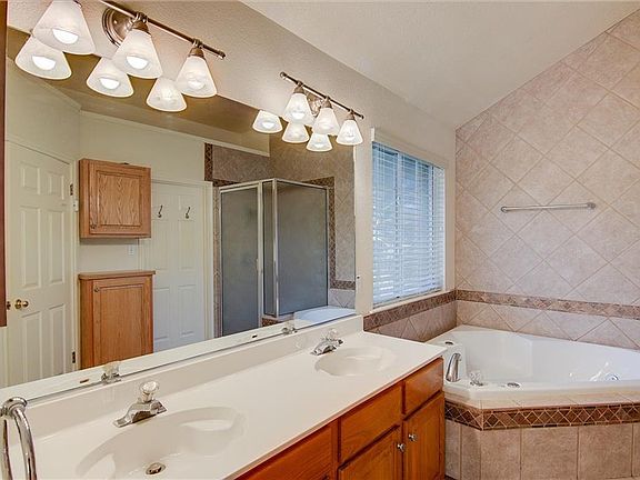 This Leander one-story corner home offers granite kitchen countertops, a fireplace, and a two-car garage. Upgraded features include a new roof.