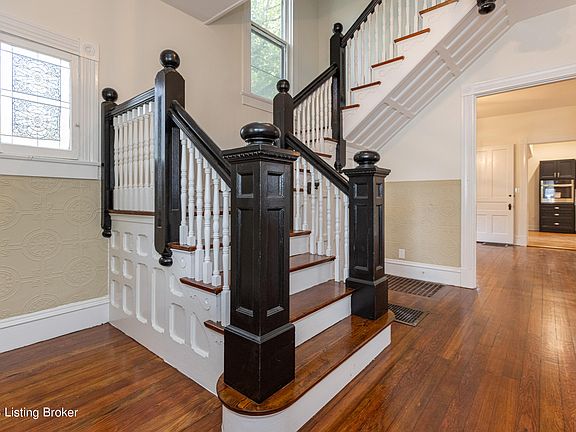 NO TRICKS, ALL TREATS! This complete renovation is not one to miss! Over 3300 sq feet of gorgeous living spaces! This Historic Queen Ann has been reimagined with love and care- Oozing with charm you will delight in the gleaming refinished original hardwood floors, detailed trim molding and millwork that only a home of this era can offer. Upon entering under the covered front porch the traditional foyer & grand staircase greet you. the front sitting room flows effortlessly into the large family room. The solid wood original pocket doors remain in place and operable for your entertaining, and design desires! Fireside formal dining room with transom window row allows easy access to the newly reimagined chefs kitchen as well as the separate laundry utility/mud room. Dual access entry to the main level powder room lends convenience. With a chef's kiss, your new kitchen boasts abundant cabinetry, upgraded stainless steel appliances & overflowing granite counter prep space! The second level offers 4 large bedrooms & large fully tiled walk in shower with glass enclosure! Heading to the third floor you will be wowed! This multi purpose space is ready to be utilized for whatever your needs may be- Custom finished with hardwood flooring, walk in closet and an oversized full bathroom! The large level lot, detached garage, off street parking and an abundance of greenspace complete this rare gem. Easily access downtown New Albany, shopping, dining, and major thoroughfares! NEW ROOF, PLUMBING, ELECTRICAL, FIXTURES the list goes on! Listing Agent has a financial interest in the property.