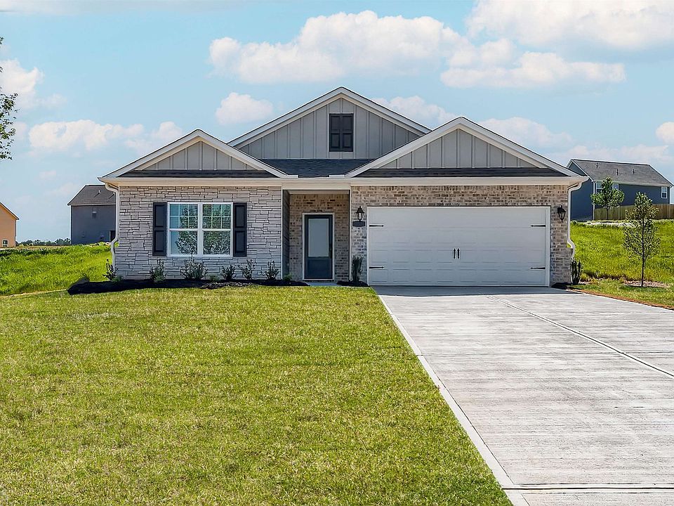 Burton The Burton at Bunn Farms is an exceptional, 3-bedroom, 2-bathroom floor plan with a 2-car garage. The master suite is the perfect space to relax, while the additional two bedrooms give you the space you need for your growing family. This home boasts an open-concept layout with a spacious family room, a chef-ready kitchen with a spectacular island that overlooks the dining and living areas, and a dining area that extends into a sunroom. Enjoy a covered back patio, perfect for sipping lemonade on warm summer evenings or hot chocolate around a fire pit during colder months. The Burton at Bunn Farms is the perfect place to call home!