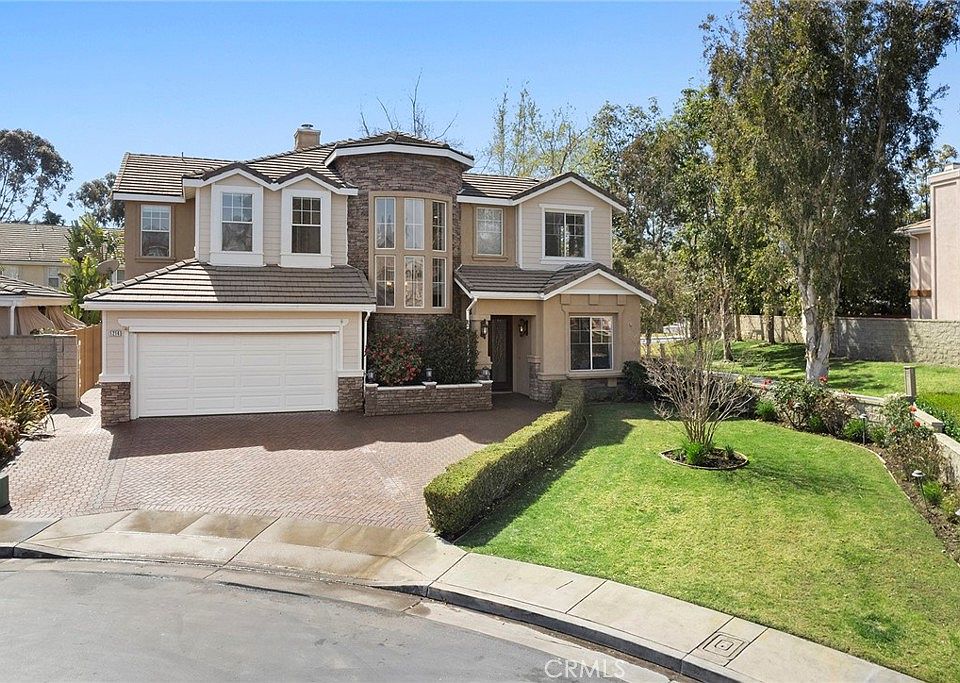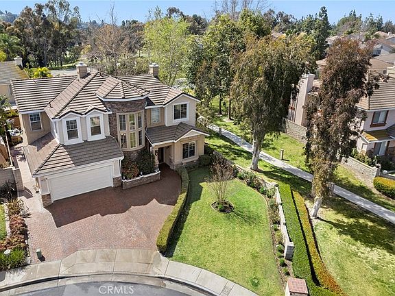 Welcome home to the largest model in the gated community of Threewoods Nestled at the corner of Bastanchury and Brea Blvd right next to the Coyote Hills Golf Club and the Raymond Hills. Enter through two of the gated entries to a sense of quiet peacefulness full with trees and nature all around. This home is set at the end of a culdesac with the green belt to its side and rear giving you extra distance from your neighbor. It's like having a big back yard that someone else takes care of. The paver driveway is big enough for 3 cars. As you pass through the double doorway the large two story entry boldly says an executive lives here. Freshly updated with today's colors you get the feeling of being in a model home. A bedroom and full bath are first up on your right followed by a covered side patio opposite the stand alone dining room. Further along is a formal living room or den with a fire place and as you round leftward the family room and kitchen are open and adjoined for nice gatherings. Lit by a long bank of windows facing the back yard and trees of the park behind the home the back yard offers a built in bbq and putting green. Past the kitchen is the laundry room, butlers pantry, powder room and garage access. The circular staircase leads you upstairs to a roomy landing with storage surrounded by 4 spacious bedrooms, a full bathroom and a loft. The master suite is very generous with walk-in closet in the bathroom, private water closet, soaking tub, separate shower and double vanity. This pristine home is move in ready. Nearby are Fullerton's famous walking trails, shopping is right across Brea Blvd and major retail and freeways are just a few short minutes away and don't forget the golf course right next door. It's truly Everything you need in a beautiful area.