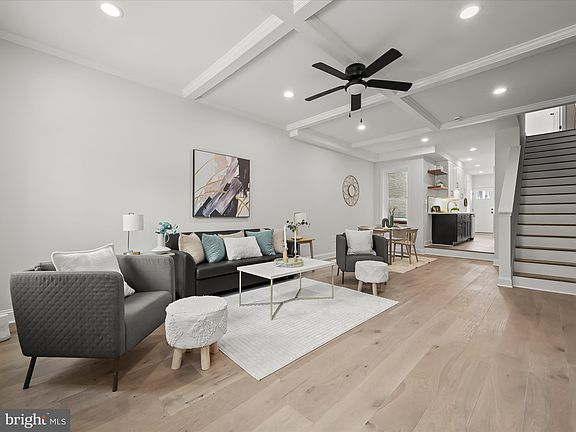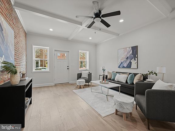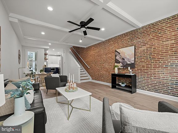 Introducing this completely renovated home in the sought-after Locust Point neighborhood, offering four bedrooms and three and a half bathrooms. With a rooftop deck and parking pad, this home has everything you need to enjoy the best of city living. Inside, the open-concept main level features a front living room adorned with a coffered ceiling and an exposed brick wall, along with a separate dining area. Prepare your favorite meals in the exquisite kitchen that boasts quartz countertops, an accent tile backsplash, soft-close 42” cabinets, and stainless steel appliances with gas cooking. Adjacent to the kitchen, a mudroom area includes a convenient half bathroom and access to the rear one-car parking pad. The second level offers two spacious bedrooms that share a full bathroom featuring a frameless glass-enclosed walk-in shower, a soaking tub, and a dual-sink vanity. This level also includes a laundry closet with hookups for added convenience. Upstairs, the top level hosts the lavish primary bedroom suite, complete with an accent brick wall, a walk-in closet, and a secondary closet. The luxurious ensuite bathroom highlights a large glass-enclosed walk-in shower with a bench and a dual-sink vanity. This level also includes a wet bar and access to a two-level rooftop deck with panoramic city views. Downstairs, the finished lower level has a versatile fourth bedroom, which can also serve as an office, den, gym, or guest room, along with an adjacent full bathroom with a tub shower. The utility room offers ample storage space, and energy-efficient dual-zoned heating and cooling systems ensure year-round comfort. Enjoy everything that Baltimore has to offer in the desirable Locust Point neighborhood, with a wide variety of shopping, dining, and entertainment options. Please remove shoes.