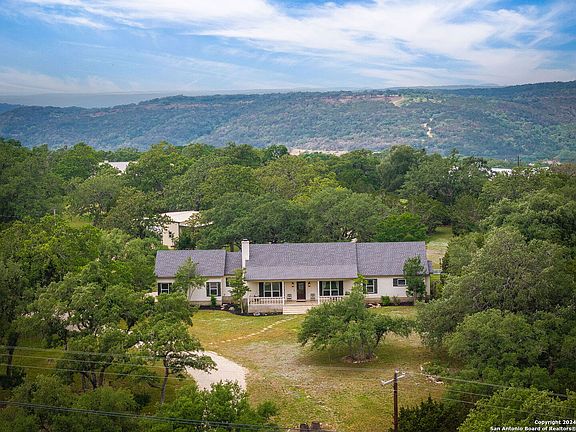 This one checks all the boxes.... killer 2.68 acre lot with century oaks, adorable single story 4 bedroom home with additional flex space, huge Mueller building (30x40) big enough to house all of your toys, gorgeous nighttime views of the New Braunfels and Gruene skylines, outdoor kitchen, fireplace, recently installed roof, and the list goes on and on. You can enjoy peaceful nights from the oversized front porch and back patio and fireflies buzz through the trees over the super cute treehouse. Kitchen includes Silestone counter tops, pull out drawers in pantry, glass front cabinets, and a large window over the sink with a view of the entire back yard. Large dining area plus breakfast bar allows for multiple dining options. With an oversized primary bedroom, oversized walk in closet, and dual vanity area in master bath, the primary is extremely spacious. Secondary bedrooms have walk in closets, lofts and dual bathroom vanities. And if that isn't enough room to spread out, River Chase also has at 58 acre private river park and private pool/clubhouse complex with trails, fitness room, fishing pond and sport courts. The neighborhood festivals and activities in this neighborhood cannot be beat. This home is zoned for Hoffman Lane Elementary and less than 10 minutes to Gruene, Canyon Lake and New Braunfels.