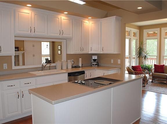 CAN BE 2 LIVING SPACES! 2 kitchens, 2 laundry, 2 lvng rms. On Hidden Cove Lake w/dock & rip wrapped shore.Mtl roof, Corian ctops,custom wood cabs,h/wood & tile,Low-E windows,gas FP,3 vehicle carport,walk-in basement.Add'l BD in In-Law quarters.