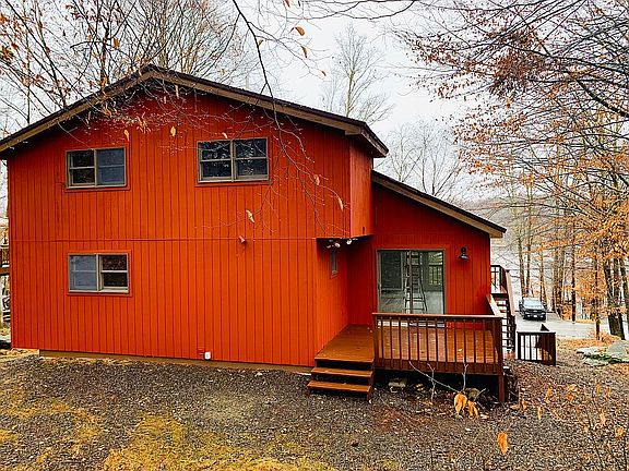 COMPLETELY REMODELED & MOVE-IN READY MOUNTAIN CHALET WITH LAKE VIEWS in the amenity-filled four-season community, The Hideout, only two hours from NY/NJ/Phila. Prime location in the highly desired ''Golden Triangle". Picture yourself stepping on the oversized front deck to enjoy a drink and take in the gorgeous lake views - this home is situated at exactly the midpoint of the main lake, so easily accessible to the main beach/pool/Tiki bar as well as the more relaxing North Beach. Fun & safe & active community: 24x7 security, motorized boating, pools, indoor sports complex, pickle-ball/tennis courts, an arts center, golf course (with golf carts!), ski hill, tubing, restaurants, and much more! The owner has been personally involved in overseeing this rehab: NEW FLOORING, NEW BATHROOMS, NEW TILES, NEW CARPETING, NEW KITCHEN (GE appliances, oversized sink, elegant white cabinets, and an absolutely stunning quartz countertop!), NEW HIGH-EFFICIENCY ELECTRIC BASEBOARD HEATERS, NEW WATER HEATER, NEW LAUNDRY ROOM SINK, NEW CEILING LIGHTING, and even NEW REMOTE-CONTROLLED FANS! And of course, the exterior has been meticulously cared for as well: MODIFIED GRAVEL throughout the front yard, NEW FRONT DOOR, NEW GARAGE DOOR (on the attached oversized one-car garage), and a FRESH COAT OF PAINT (interior & exterior)!! This STR-friendly property allows for multiple friends/families to retire to their own space for some privacy at the end of the day since each of the three floors has at least 1 bedroom and 1 full bathroom. The only thing left for you to do is to move in and enjoy! Please contact seller directly with any questions 908.721.7659 or pasqb55@hotmail.com