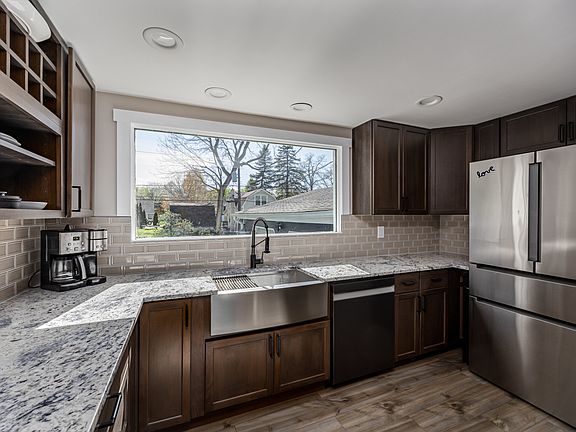 Perfectly situated on an oversized, fully fenced lot and nestled in proximity to the Fox River, this charmer features a recently renovated, fully equipped cook's kitchen with rich custom cabinetry, stainless steel appliance package, subway tiled backsplash, granite countertops and farmhouse style SS sink with epic picture window. Main level is STARRing luxury VPF, first floor bedroom, full bath and all season sun room. Upstairs you'll find a newly renovated hall bath, additional bedrooms, and plenty of square footage for den or play area, plus ample storage. Finished basement features ground level windows and half bath. 5 minute walk to train and the charm of downtown Fox River Grove.