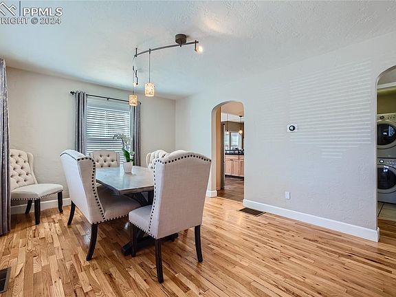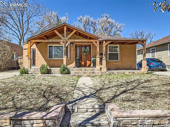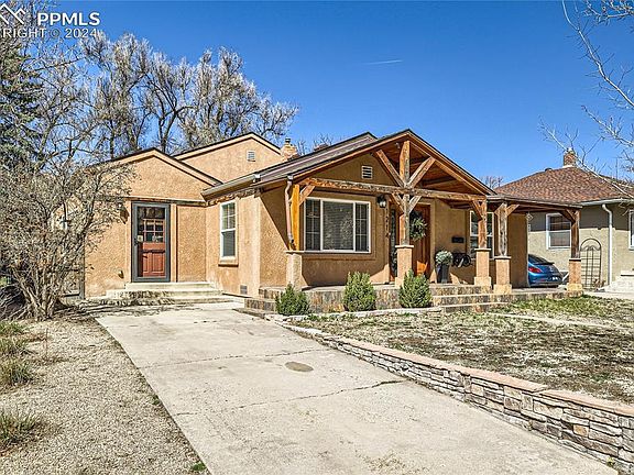 Welcome to this beautiful 3 BR/2 BA ranch home in a highly desirable downtown neighborhood. This home, built in 1948, maintains the beautiful character of the home with the original hardwood flooring alongside the beautiful modern conveniences of a gourmet kitchen, luxury bathrooms, and the addition of a master bedroom with an ensuite and a beautiful family room with a fireplace. Enter the home to a large, bright dining room boasting the original hardwood floors. Move into the gourmet kitchen that features 2 sinks (both with disposals), beautiful stone flooring, under cabinet and in cabinet lighting, soft close drawers, walk in pantry, a wine refrigerator and built in wine rack, and stunning stone and copper trimmed back splash. And the kitchen comes with all the modern appliances for the gourmet chef and a beautiful bay window that lets in so much light! The family room features a built-in beautiful fireplace, vaulted ceilings, and a ceiling fan. There are French doors with nested blinds that lead to the back patio. The master bedroom is a serene oasis with vaulted ceilings, ceiling fan, another set of French doors with nested blinds to the back patio and a large walk-in closet. The attached bathroom features a walk-in shower with multiple spray shower head, separate jacuzzi bathtub with beautiful chandelier lighting, dual sinks and heated tile floor. There are 2 additional bedrooms with ceiling fans, a charming second bath with garden tub, and a separate washer and dryer room. The home features a Nest Smart thermostat with AC and auto sprinkler system. The spacious back yard has views of Pikes Peak, a patio with a gazebo for those beautiful summer evenings, a water feature that is sure to bring relaxation, and plenty of room to enjoy the outdoors. The oversized 1 car garage has easy access from the alley. Enjoy the quiet location while being centrally located to everything that downtown has to offer. Come see this amazing home!