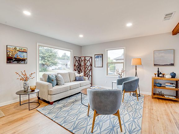 Imagine this light and bright remodeled home with it's fresh seaside colors being yours! New new new.. so much new! Updated electrical, heating and plumbing too. New kitchen appliances, cabinets, bathroom fixtures, carpet, tile, interior and exterior paint.. The list goes on! 3 bed/1 bath in main home with separate on-suite providing an additional 1 bed/1 bath and you still get a full 2 car garage. We are not sure what we like better; the brightness and functionality of the kitchen, or the warmth and comfort of the living room with the wood floors and large picture window. I love the dining room and the separate en-suite. I also love the quiet neighborhood and the centralized location, all while still having a straight shot across town to shopping, restaurants, the freeway and the parks.