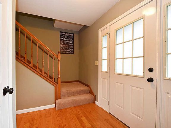 Beautiful 4 bedroom two story on an awesome lot. No homes behind you. Open area. Eat in kitchen with white cabinets. Open concept to family room with fireplace. Finished basement with bath. Huge deck. Nicely landscaped. Shows well.