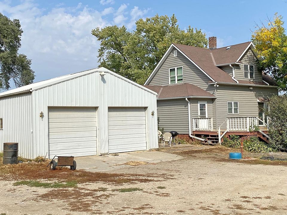 3-bedroom, 2 bath, home with several updates and newer 24 x 27 detached garage on 2.69 acres m/l near Harlan, Iowa. Main level features: kitchen with stove, refrigerator, and microwave; formal dining room with oak floor and sliding glass door to 14 x 32 wood deck; living room; main level bedroom with bath that has large shower, vanity, stool, also included are the full size stack-able washer and dryer; and mud room. Upper level with 2 bedrooms and full bath. Walk up basement. See photos. 24 Hours notice to show. Do not arrive before scheduled showing time.