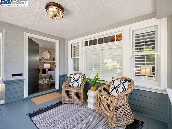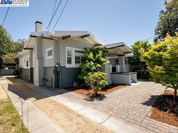 Built in 1918 on a park-like setting in Alameda's desirable East End, this tastefully updated single-level Craftsman home has charm and curb appeal to spare! Located close to downtown Park St amenities and Otis/Lincoln schools, this bright, sun-filled home features 3 bedrooms, 1 updated bathroom, traditional living and dining rooms, a spacious kitchen, generous basement storage, oversized lot, and a detached 2-car garage with ADU, home office or workshop potential (454 SF, measured). Craftsman details include tray ceilings, oak floors (refinished), built-in sideboards, cabinets, and bookshelves, and a gorgeous stone fireplace. The backyard offers unlimited opportunities to entertain, garden and relax outdoors with several patios and seating areas + Meyer lemon, Eureka lemon, tangerine, nectarine, peach, apricot and pear trees, vegetable beds—even a greenhouse! Freshly painted inside and out + new light fixtures. A deep driveway includes a security gate and provides tandem parking for multiple vehicles. This fabulous location is just minutes to top schools, the South Shore Center, SF Bay shoreline/beach, the SF Ferry, OAK and freeways. Perfection!