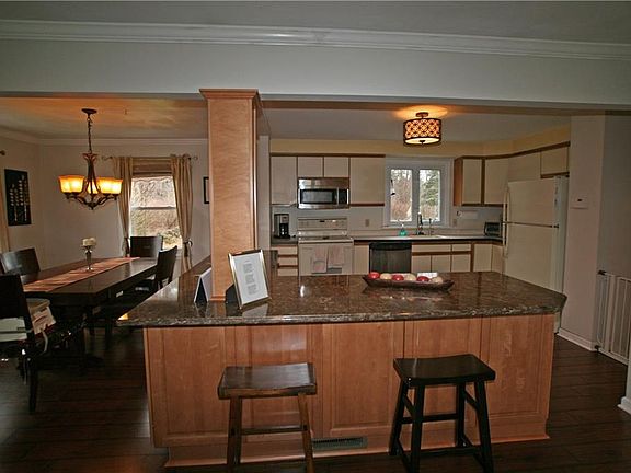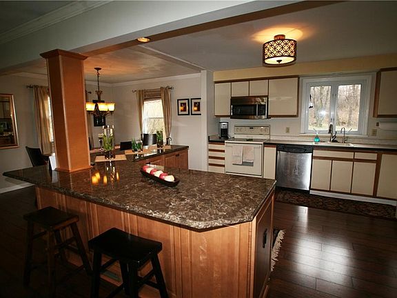This remarkable home has been lovingly cared for by the same family since the 1970's. All re-done over the years to the highest of standards. The floors were professionally installed on 1st floor. The living room has a beautiful stone wood-burning FP. A wide open floor plan is sure to catch your attention as the living rm, dining rm and kit all create an amazing atmosphere! Center island is focal point of the space. Gorgeous laminate flooring enhance the rms. Upstairs, a master bdrm en suite is the perfect place to unwind. All baths updated. The nearly 1 acre lot is very private & peaceful & you can enjoy it all from the beautiful deck or pool. A finished basement rec room is just another feature to make this a home a 10! Mechanical updates incl; newer architectural roof, siding, windows.