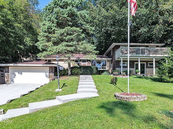 Calling all nature lovers! Large home with great bones uphill from the Fox River (no flood plain!) Voluntary not mandatory association if you want access to the community boat launch and community gatherings. So many things to enjoy about this home- spring fed pond on property, fenced in area with shelter for your pets, addition built in 1983 that includes family room, 2nd kitchen, 2 full bathrooms and 2nd floor master with 24 x 8 ft deck overlooking front yard! Great location close to downtown Algonquin!