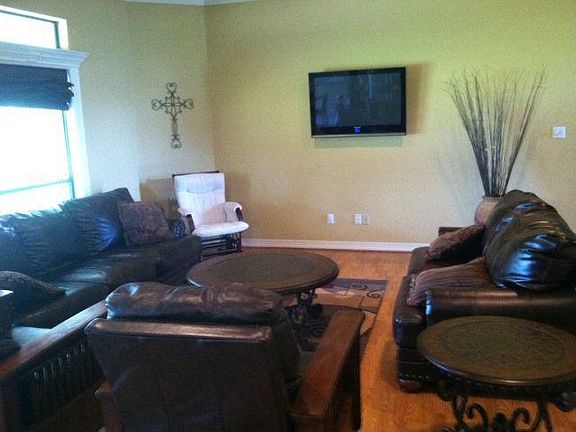 This home boasts style and charm. Enter through the front doors to this inviting open living/kitchen area, Perfect for those family gatherings. As you sit enjoy the view through the large windows into the back yard and watch the kids play, deer run by or just the peacefulness of being in BarX Ranch. This home features a split floor plan, granite countertops with stainless steel appliances which are staying with the property.