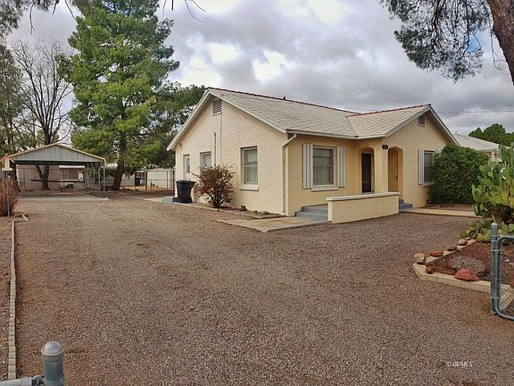 There are 2 things I'm sure of with this house.. 1) That you've drove by before in awe at the large tree out front and 2) You looked at the price and your jaw just dropped. Well pinch yourself because your not dreaming! This charming home is situated right in the heart of Safford, and has an abundance of parking. In that, you will find an elongated driveway and 2 covered awnings, both with electricity and a chain link fence with double gates. There is a nice enclosed workshop out back and a drip system for easy care landscaping out front. Inside the home, if you pull up the carpet,there is the possibility that you will find all the original wood floors; same as in bedroom #2. Another big plus about this home, is the STORAGE! You will love the built in bookshelf in the living room and all of the other little cabinets/shelving throughout. Cute, clean kitchen with large pantry and roomy dining and living area. So many possibilities! You could add onto the backside of the home to make an ultimate master suit or use it as a commercial property and let your imagination run wild. Hurry and jump on this one of a kind deal while you can!