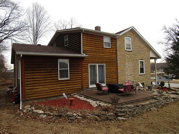 This beautiful 1889 Limestone home remodeled and updated to bring the new with the old character and charm. Exterior and Interior exposé limestone wall reclaimed to bring out the original experience with hardwoods and double sided fireplace along with mewer additions to make this a one of a kind home. This 1 1/2 story structure has 3 bedrooms on the 2nd level including a master bedroom. Main level living included a large open kitchen design, hardwood floors, large Cedar staircase to upper level and nice living/family room. Outside home is modern looking with outside patio area for entertaining and nestled against the rear hillside for protection from the elements.