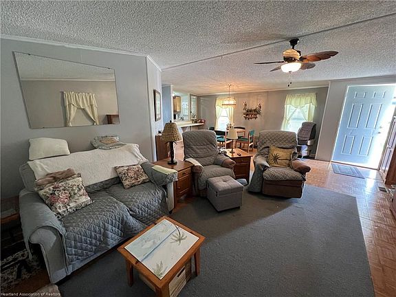 Great Double wide mobile on owned land with no HOA fee. Close to restaurants and other amenities. Perfect property for a winter retreat or just a place to call home that even comes furnished. Roof was updated in late 2017. Kitchen cabinets and appliances have been updated. Enter the front door to a floor open plan overlooking the living room, dining room, and kitchen. Storage Room located off the screened porch that even comes with tools for working around the shop or doing a few honey-do-list around the yard. Guest bath will need some TLC but could to made into a beautiful guest bathroom. Come schedule your appointment today!