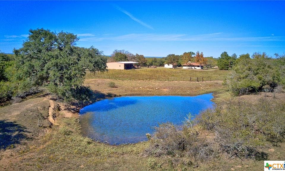 Perfect 49 acre family retreat! Furnished cabin with fireplace and plenty of room for cozy gatherings. New roof. Mature woods, wet weather creek, second pond and coastal hayfield are conducive for both turkey and deer. Stocked tank with fishing dock. New water well services home, tank, and hayfield irrigation. Garage with wash room and apartment. Fenced and cross-fenced. Cattle barn with working pens and squeeze chute. Tractor/Hay barn. Home sits back in the trees for excellent privacy. Just 10 minutes south of Seguin on paved, county maintained road! Ag exempt.