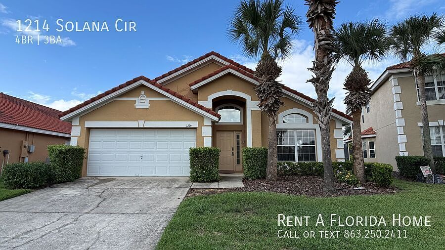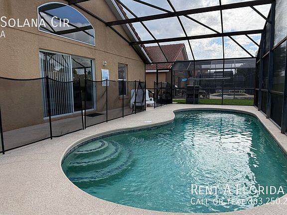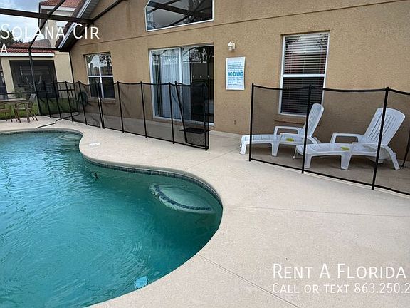 Move-In Ready Fully Furnished! Resort-Style Living in Guard-Gated Community! Basic Cable & Wifi! Experience the best of Florida living in this fully furnished, 4-bedroom, 3-bath pool home located in the highly desirable Solana Resort. Thoughtfully designed and move-in ready, this home offers the perfect balance of comfort, space, and conveniencejust minutes from Disney, Champions Gate, I-4, and Posner Park. The layout is both functional and flexible, featuring separate formal living and dining areas ideal for entertaining, along with an open-concept family room perfect for everyday use. The kitchen includes a full appliance packagerefrigerator, range, microwave, and dishwasherand connects directly to the informal dining area and family room for easy flow and functionality. The privately located master suite features a spacious walk-in closet and an ensuite bathroom with dual sinks, a soaking tub, a walk-in shower, and a separate water closet. Additional bedrooms generous in size. For added enjoyment, the garage has been converted into a game room complete with a pool table and foosball table. Step outside to your private screened-in poollawn care and pool maintenance are included in the rent for a truly low-maintenance lifestyle. A washer and dryer are included as a convenience item. Please note: the pool heater does not convey. Solana Resort offers 24-hour guard-gated security and a full range of resort-style amenities, including a clubhouse, fitness center, large community pool with cabanas, sand volleyball court, and a game room with Wi-Fi. Showings are by appointment only. Don't miss your chance to lease this beautiful, move-in ready home in one of the area's most sought-after communities. Garage space can be requested to be emptied to provide additional storage or use.