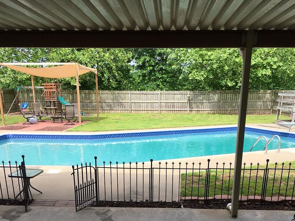 Wow!! 4br 2.5ba on 3.25 acres w/shop & inground pool. Large living area w/lots of natural light. Granite counters, stainless appliances, & pantry in eat in kitchen. Also has formal dining. Master bedroom opens to covered patio & has walk in closet. Master bath has jetted tub, tiled walk in shower & vanity area. Tile flooring throughout. Split floor plan. 2 guest rooms share jack & jill bath. HUGE covered area outback by inground pool (new filter). The shop has overhead door, a full bath, & floored attic.