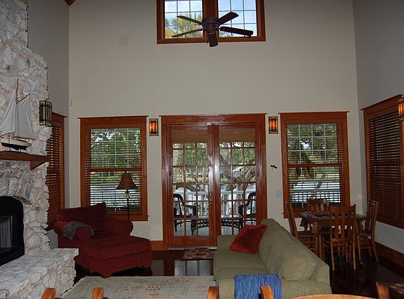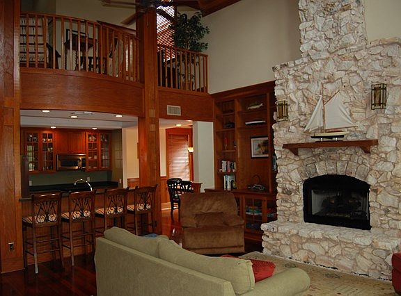 • Interior Features: Blinds, Great Room, Breakfast Bar, Open Floor Plan, Wood Cabinets, Gourmet Kitchen, Corian Counter, Other, Ceiling Fans, Walk-in Closet(s), Decorative Lights, Fireplace, Den