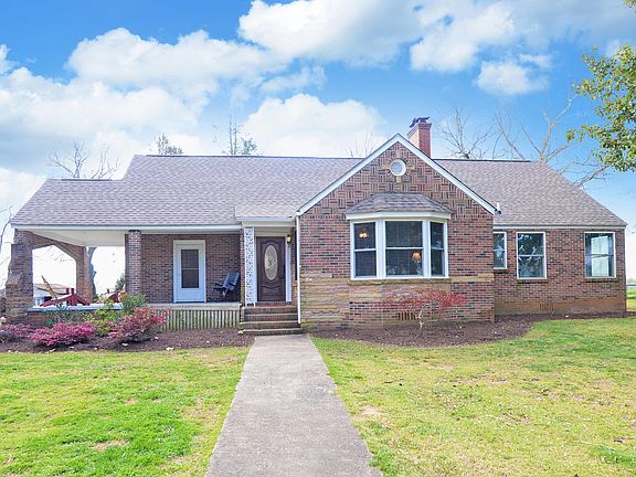 35+ acres that joins the National Forest and lush green pastures, huge oak trees and a pond. The rolling terrain is gentle enough for animals ban an easy walk. A circle driveway leads to the charming brick and fieldstone farm house. The home has been carefully maintained and restored to maintain the original beauty of solid doors, hardwood floors and arched openings. A covered side porch will be the spot to share your lemonade with friends. The main level living is open and inviting. Upstairs is another bedroom and full bath plus a playroom / office / gym space. The pastoral view of the surrounding landscape is simply amazing. Sunsets will be a favorite!