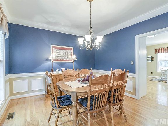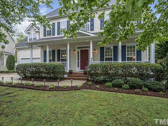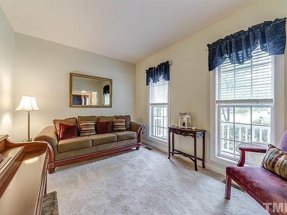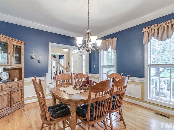 Beautifully updated home in the heart of Apex. Hardwoods thru much of main level. Newer carpet installed on 2nd floor & in living room. Large separate dining room w/ shadow box molding. Updated kitchen w/ refreshed cabinets, granite tops, tumbled stone bsplash-open to sunny breakfast nook & family room w/ gas FP. Master features WIC & renovated en-suite. Bonus room w/ sep. staircase. Finished 3rd floor perfect for office or game-room. Oversized deck w/ views of flat fenced yard & gorgeous protected woods.