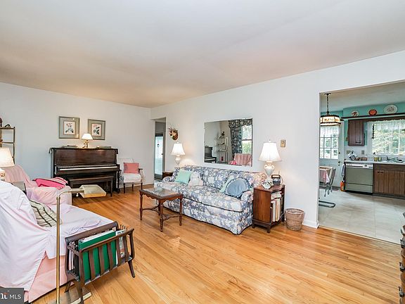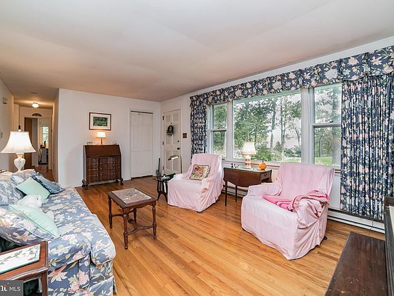 Wonderfully maintained ranch house on a beautiful partially wooded 1.2 acre lot with abundant gardens, peacefulness and privacy. Enter through a covered front porch into a large, airy living room with picture window and hardwood floors that extend through most of the house. The eat-in kitchen has a pantry, decorative plate shelf and a door to the rear yard. The adjoining dining room has a bay window. Step down into a cozy family room with wood beamed ceiling, built-in cabinets, new carpeting and a stunning fireplace with stone surround. Sliders from the living room lead to an expansive 4-season room with abundant windows, built-in shelving and storage, two skylights and a door to the rear yard. The master bedroom has a private bath. Two other bedrooms are serviced by a hall bath. Full unfinished basement offers outside access and plenty of storage. 2-car garage. ***Brand new septic system installed September 2020*** Very neutral decor; one story living. Great location in the very desirable Pennridge School District.