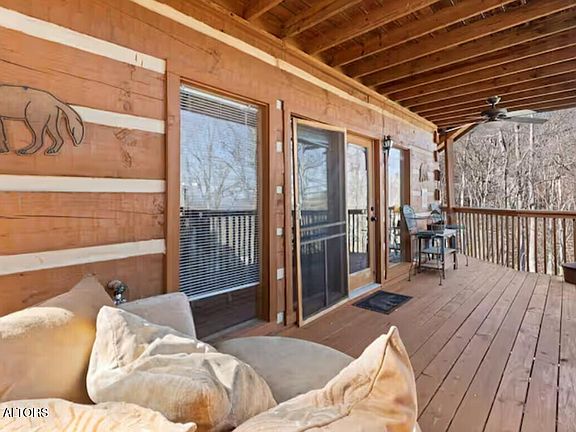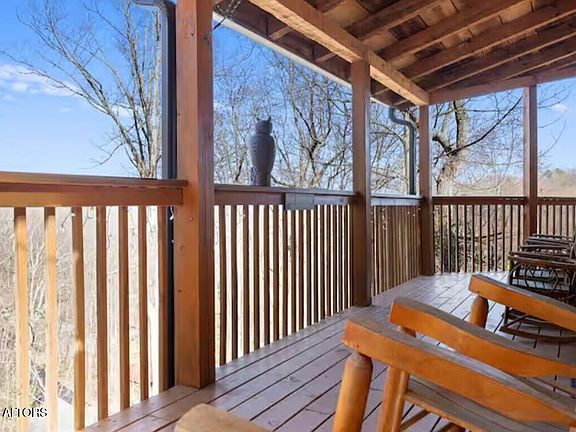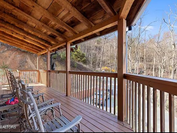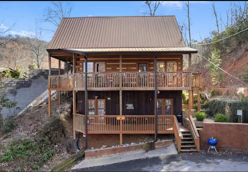 This charming 3-story cabin sleeps 9 people and is a must-have for your portfolio. Featuring 2 bedrooms, 3 full bathrooms, and 4 porches, it offers breathtaking year-round mountain views and a spacious wraparound porch perfect for hosting guests. With 4 TVs and everything already in place, it's ready for rental income right away.