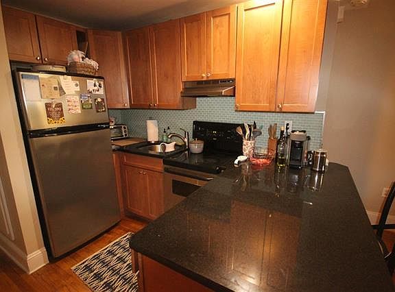 The Patrician. Lovely uptown Hoboken 2 bedroom apartment has high ceilings, hardwood floors and bay window.. New kitchen with maple cabinets, stainless steel appliances, black granite counters and tile backsplash. Renovated bathroom. Bedrooms at opposite ends of unit. Ceiling fans, air conditioning and washer/dryer in unit. Being freshly painted. Easy access to NY transportation, parks and shopping. One year lease. 1.5 month security deposit. Tenant pays utilities. Credit checks required. One month rental fee paid by tenants. No pets, no smoking please. Offered by NJ licensed real estate broker.