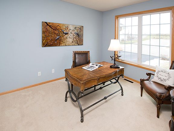 Like-new construction, this light and bright two-story home features a great floorplan, walk-out lower level with a finished basement, 3 bedrooms on the upper level with a 4th in the lower, main floor office and laundry, heated 3-car garage, and water views overlooking Buffalo Lake. Ready for you to move-in and enjoy!