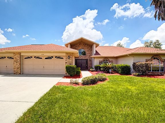 Fill this wonderful home with love and memories! Placed perfectly on a corner lot with .63 acres. Wonderful neighborhood in the Barony Woods subdivision but NO HOA! So Much space in this home, there is room for everyone. Roof was replaced in 2015 and A/C around the same time. Soaring vaulted ceilings create an open atmosphere. Elegant double door entry way with decorative tile flooring. Dining room with spiral stair case leading to extra loft area. Great place for a game room! Spacious kitchen has breakfast bar, plenty of cabinets and open to breakfast nook and family room. Light and bright family room with wood burning fireplace for warmth and appeal. French door access leads to the lanai area. French doors lead to bonus room or office area. Huge guest bedrooms with plenty of closet space. Master bedroom is massive in size and a bathroom to match it. Jacuzzi tub in the center of the room, dual sinks, a separate shower, and a large walk in closet complete this perfect bath. Continue out to your beautiful lanai where you can enjoy relaxing evenings or a fun day in the pool! This lot has plenty of room for the little ones and pets to play. Make this house your home and come view today!